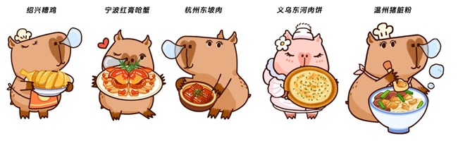 其中五城文旅局联合推出 “卡皮巴拉寻味浙江” 系列联名海报,将 IP 形象与各地标志性美食创意融合,兼具趣味性与传播性,还同步上线了卡皮巴拉专属表情包,让用户在社交互动中进一步强化活动认知,毕竟,谁又能拒绝这么可爱的卡皮巴拉带你解锁本地美食呢!